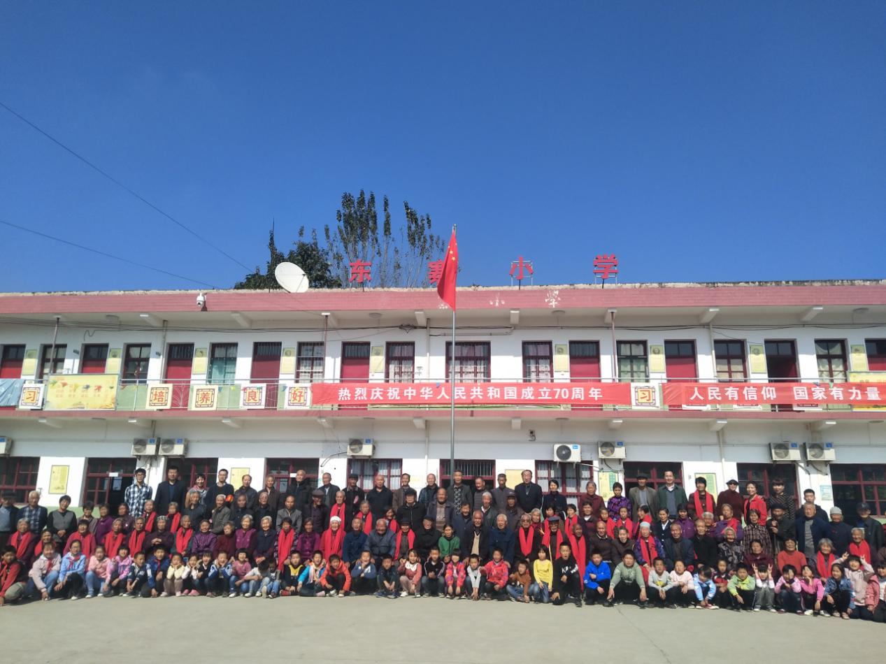 幫扶干部與東寨村老人、兒童合影